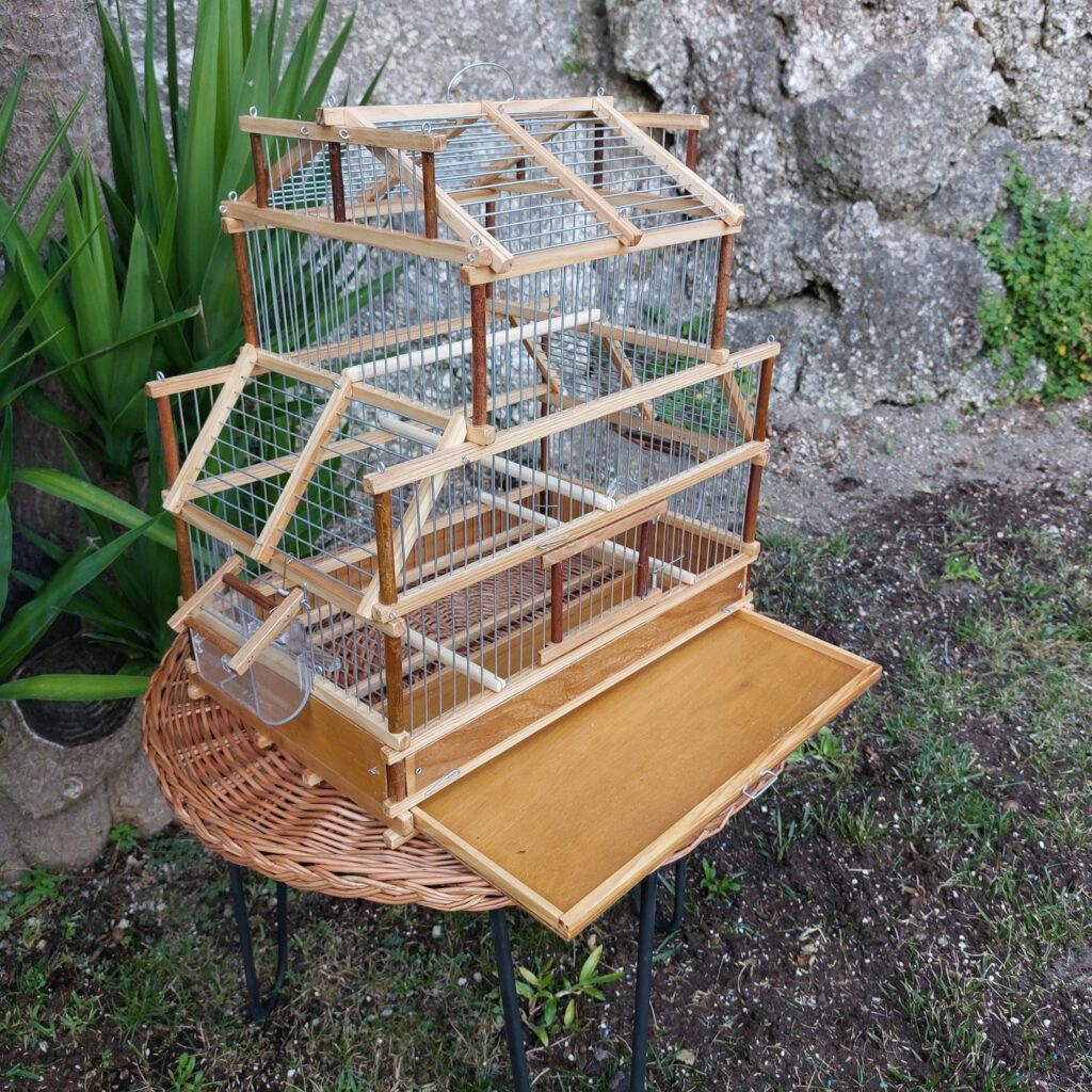 This wood is collected from waste centers and transformed into this beautiful cage.