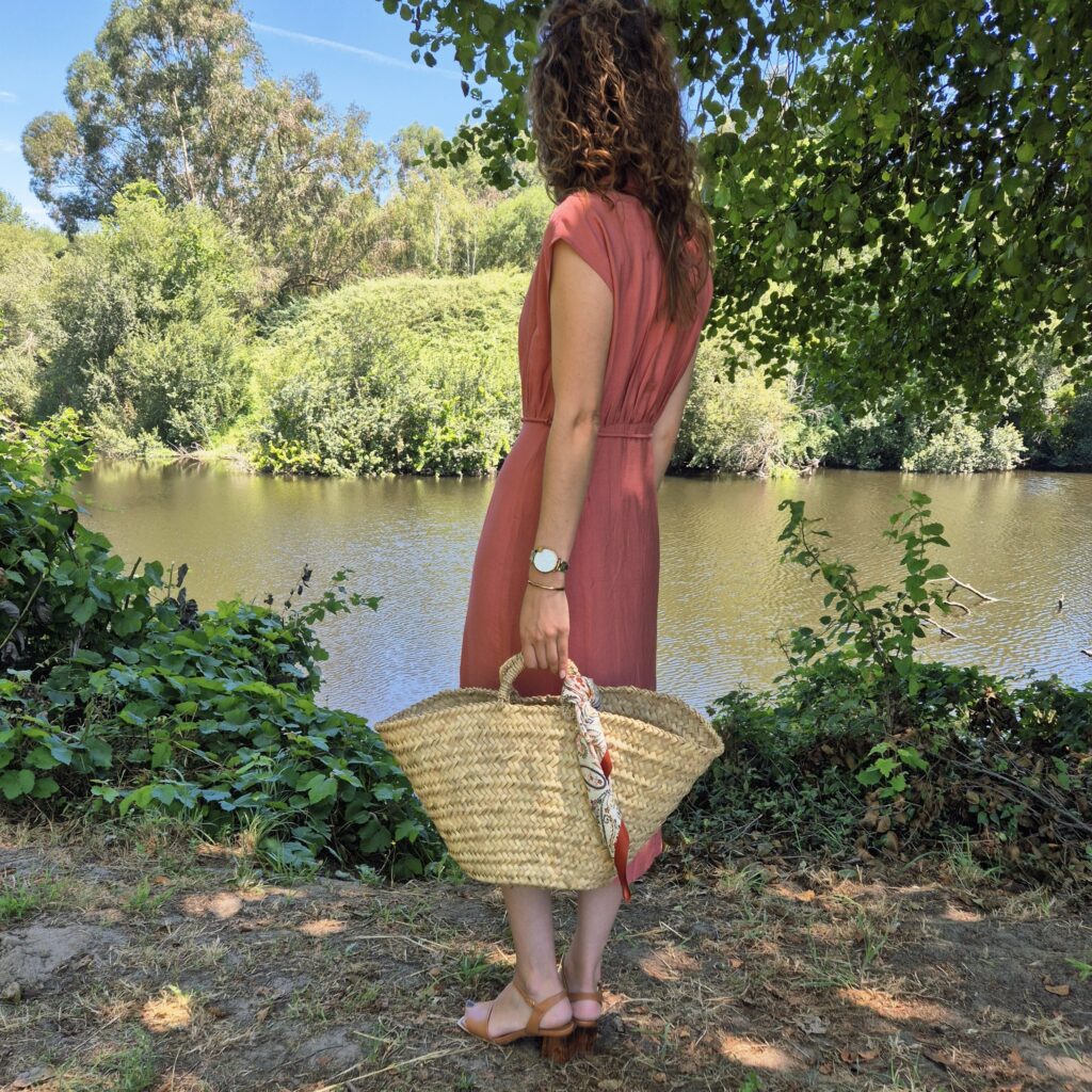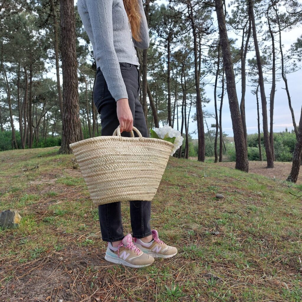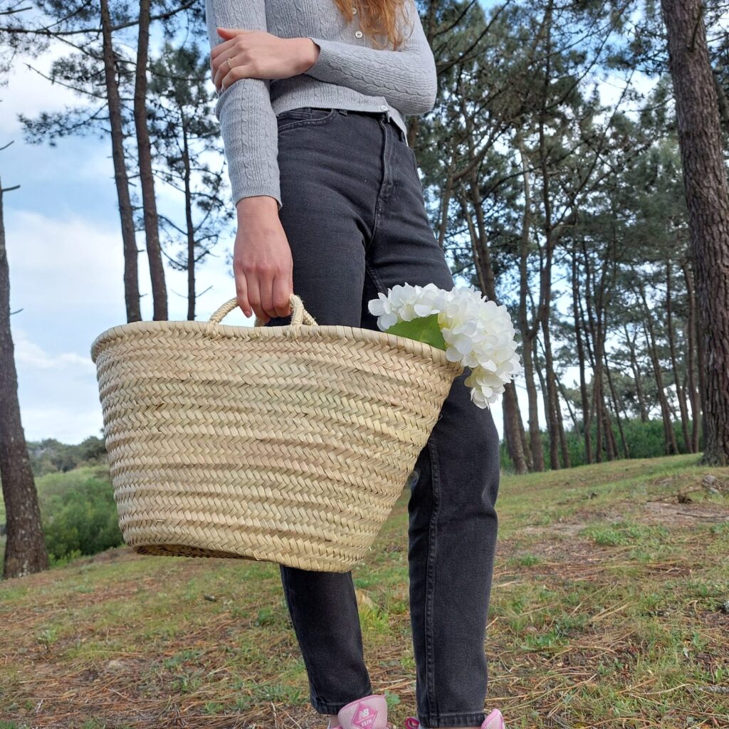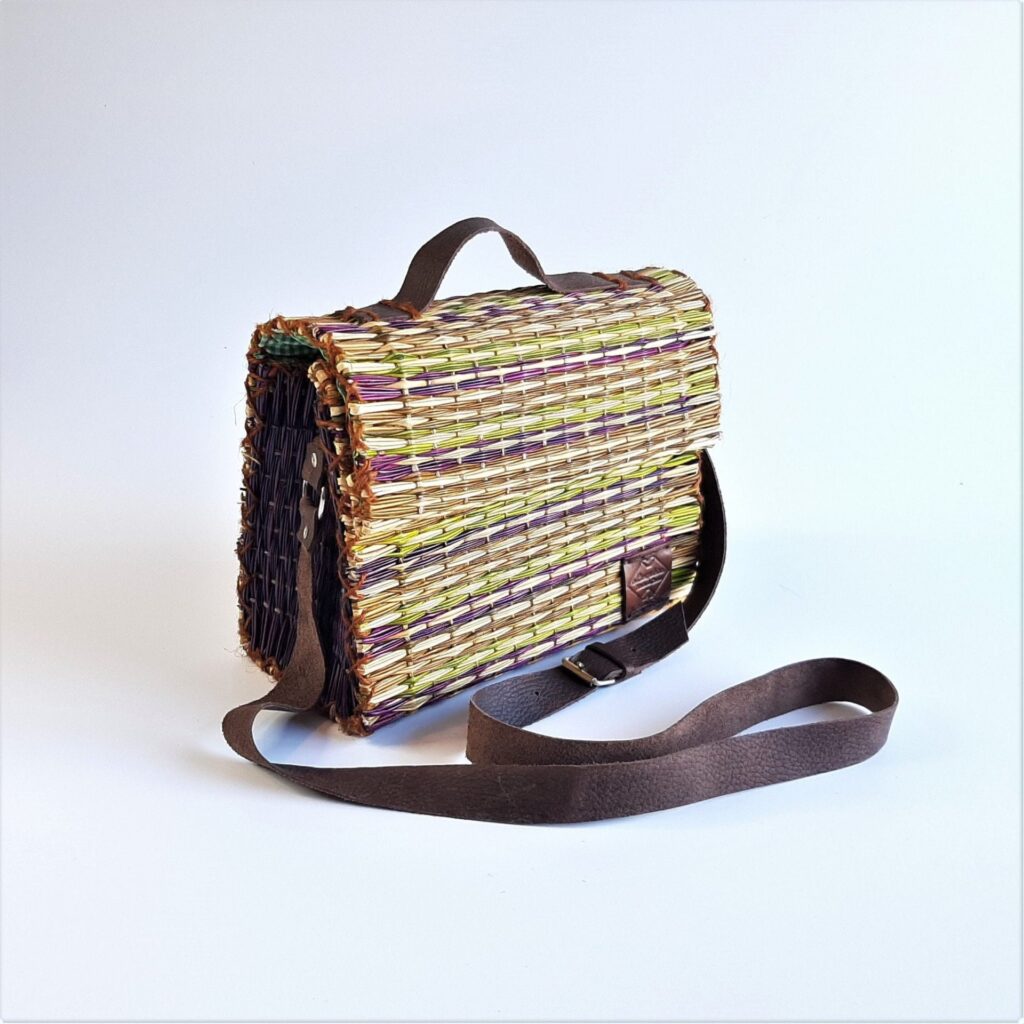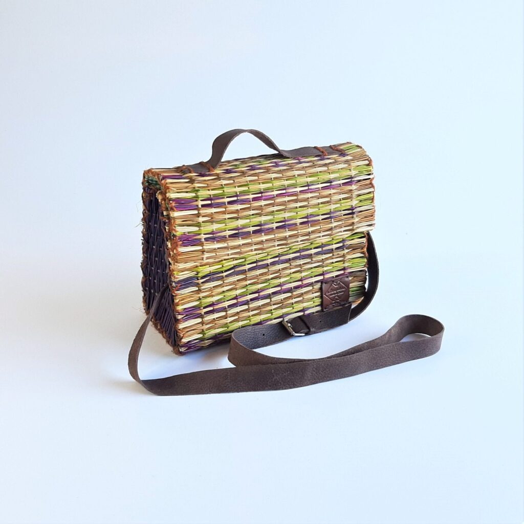 Bolsa de Ombro Junco com Alça de Pele - Palha Natural e Colorida