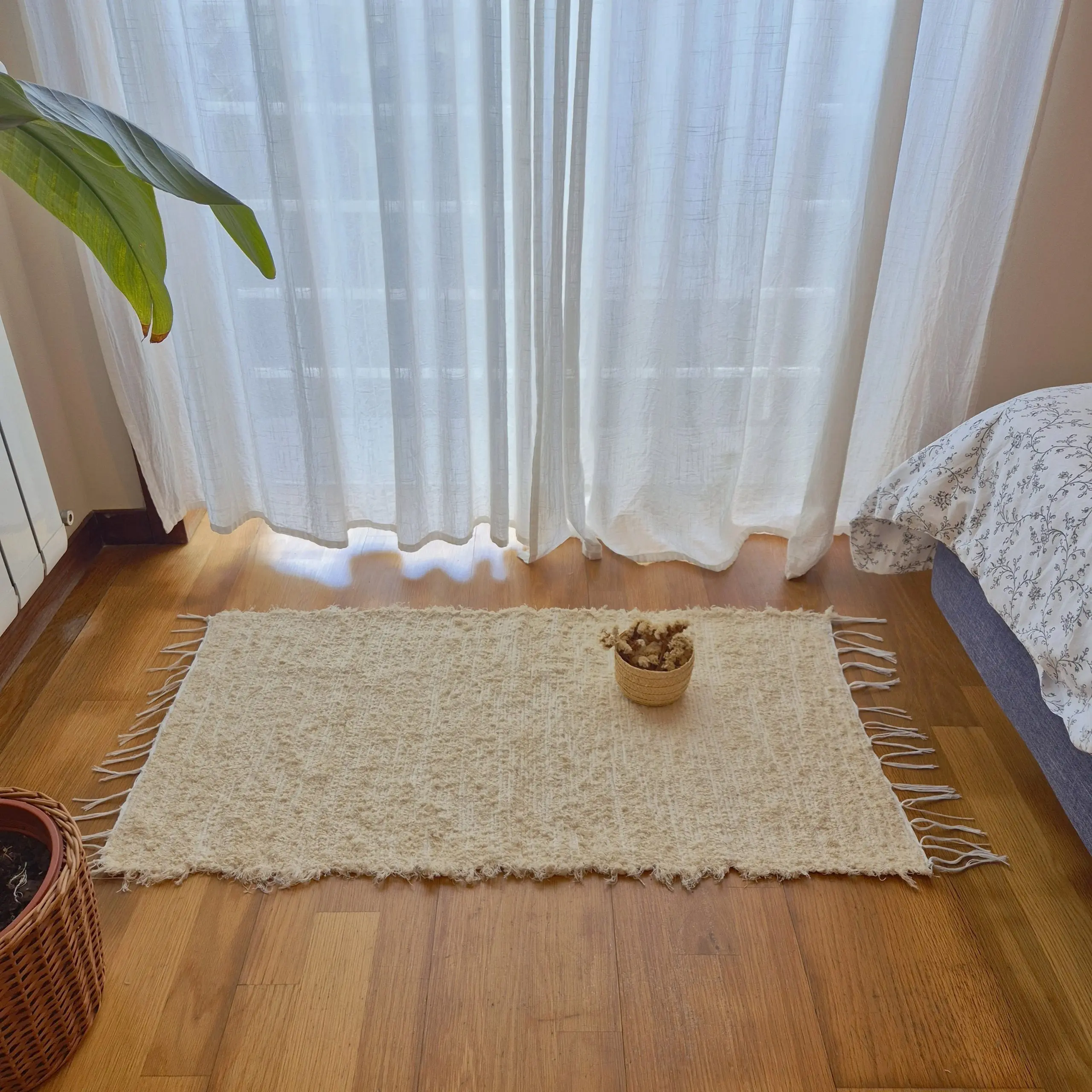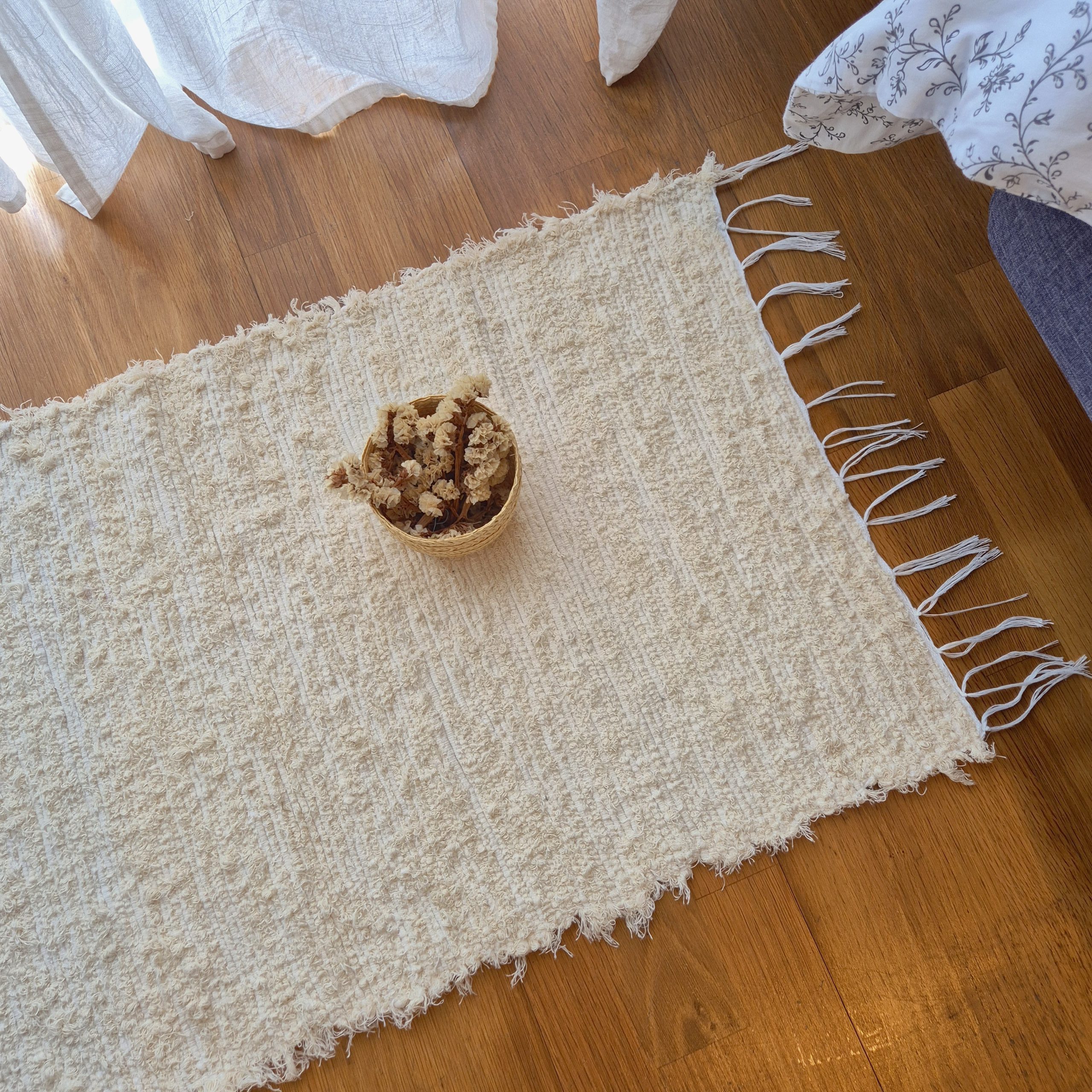 Category: Small Rugs Tags: bedroom rug, boho rug, entry rug, kitchen mat, nursery rug, organic rug, rag rug, recycled rugs, rugs for bedroom, rugs for living room, scandinavian rug, small rug, vintage rug