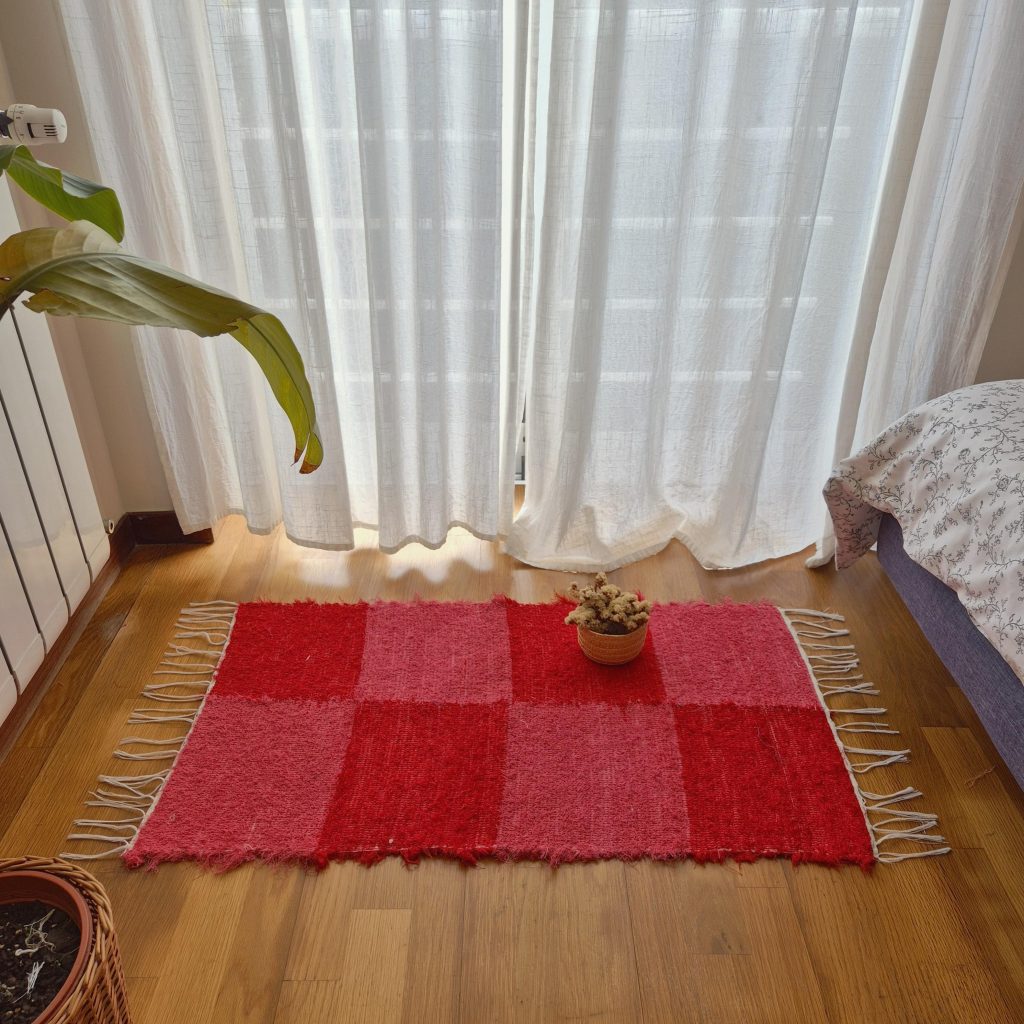 Mini Tapete às riscas vermelhas e cor-de-rosa - 50x80cm - Tapete de argolas