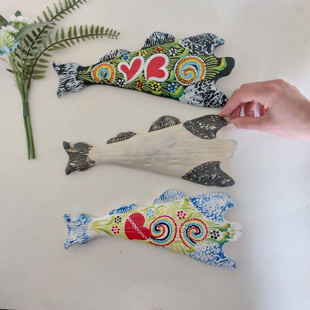 Pendurar na parede Sardinhas em cerâmica preto mate