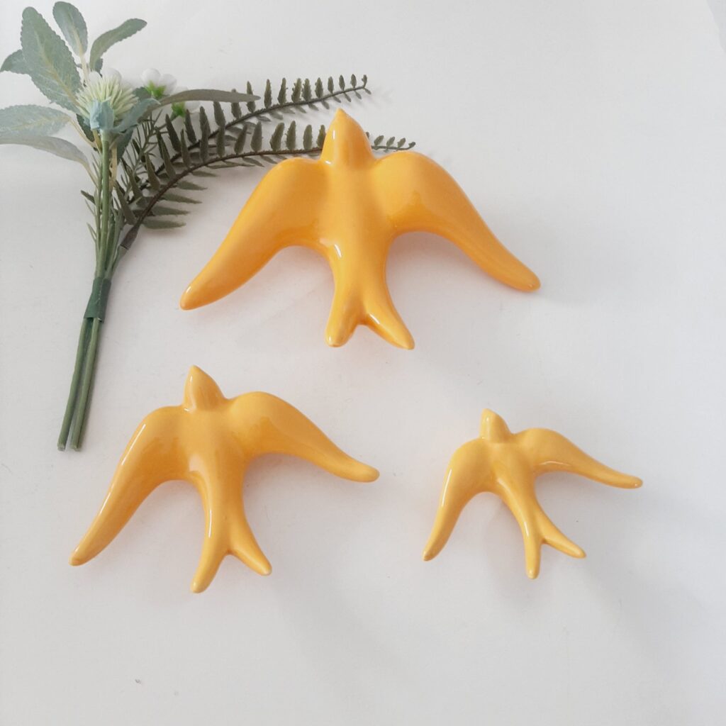 Bonita estatueta de andorinha... cor e acabamento lindos e muito bem trabalhados... fica linda exposta na minha parede!