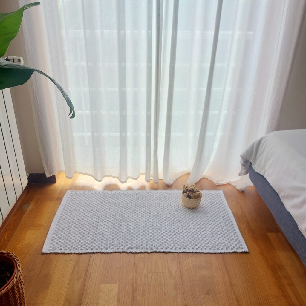 Para além de serem ecológicos, uma vez que reutilizam matéria-prima desperdiçada pela indústria, são muito mais saudáveis do que os tapetes de fibras sintéticas.