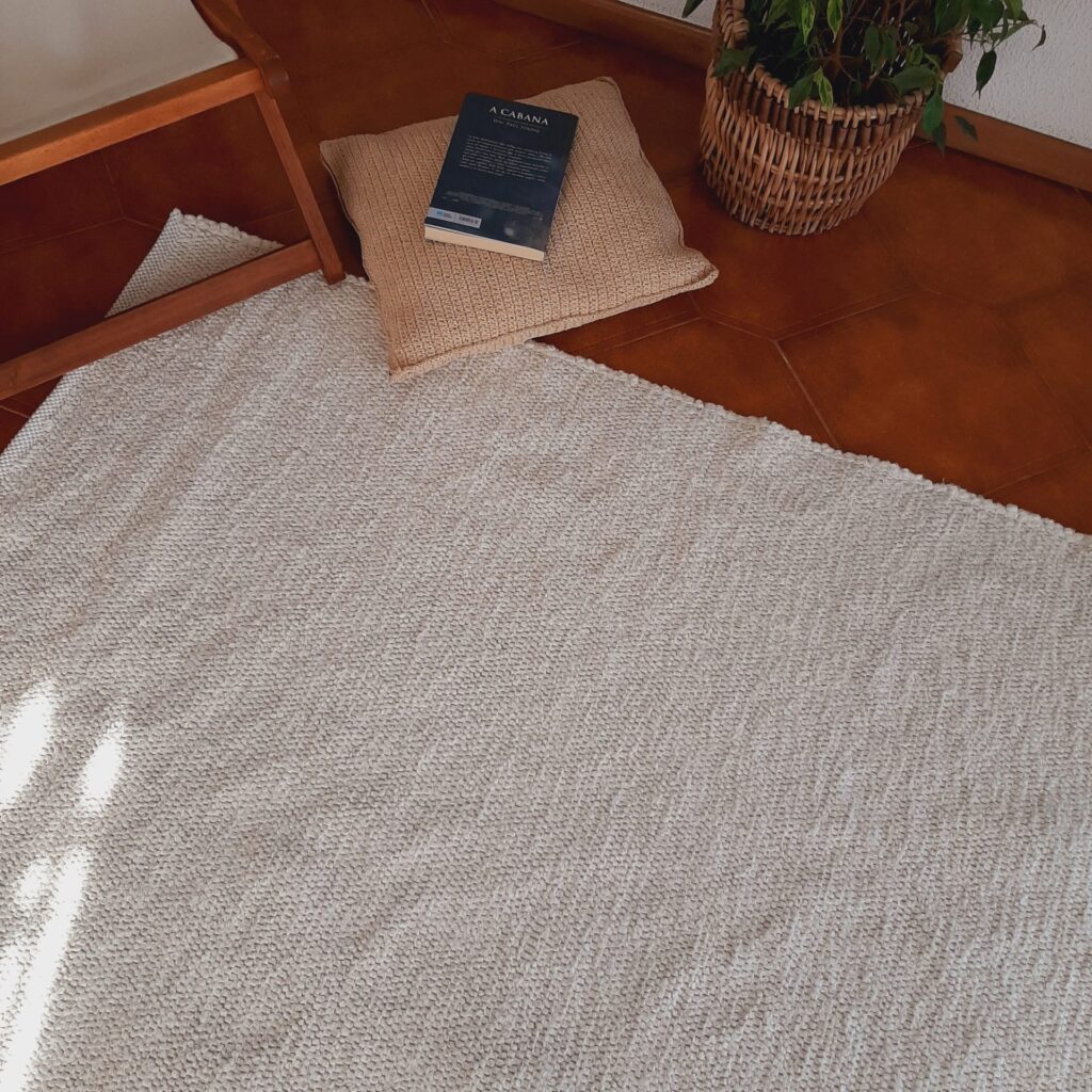 Também é possível fazer este tapete sem franjas. Neste caso, o acabamento é feito com costura na cor do tapete. Para este tipo de produção especial, precisamos de mais cinco dias para enviar o seu tapete.