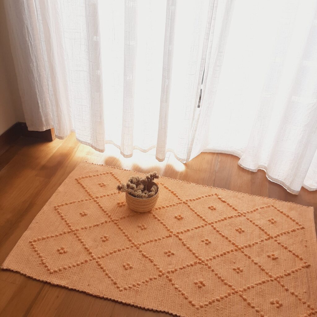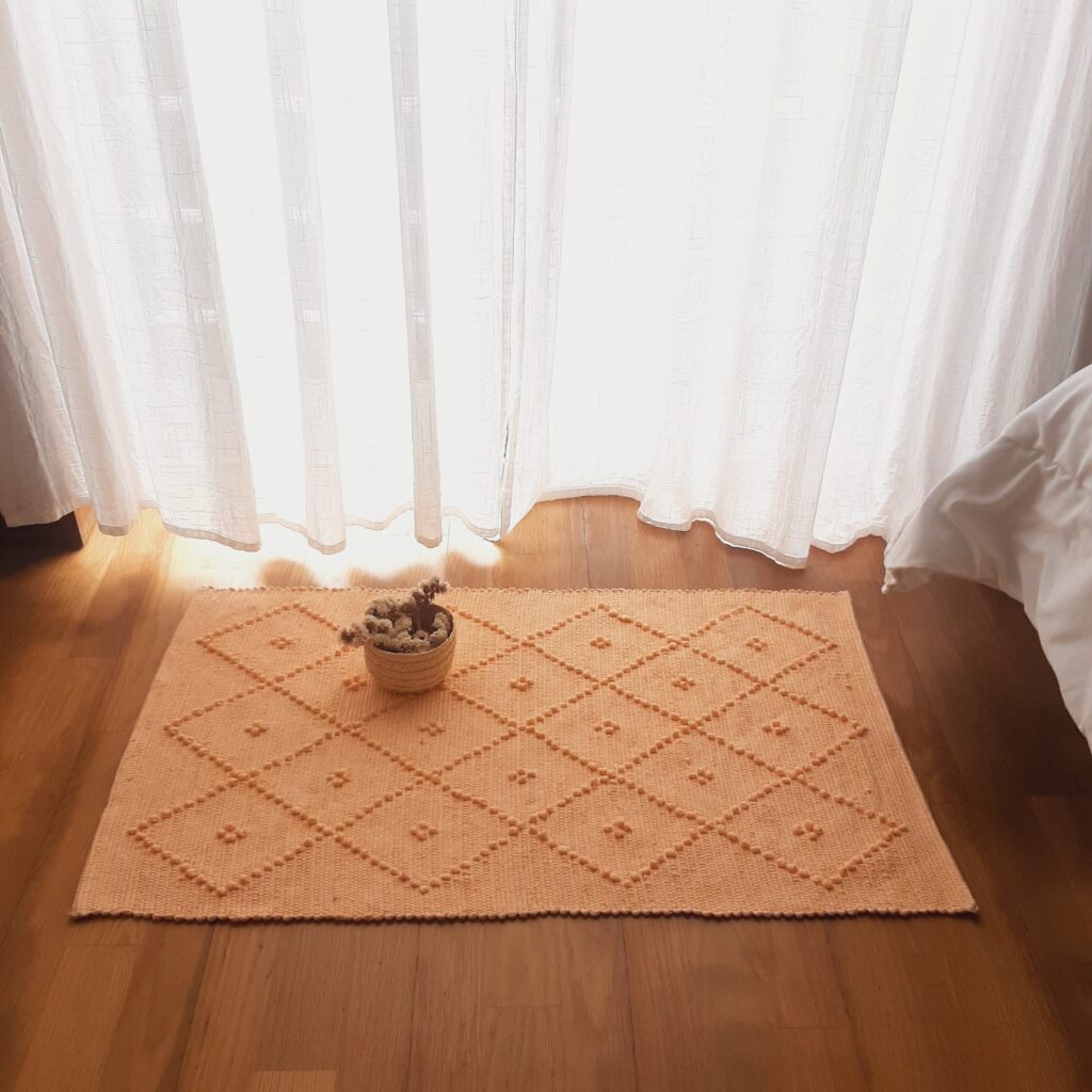 Uma vez que este tapete é fabricado com produtos reciclados das indústrias têxteis, pode haver ligeiras variações de cor.