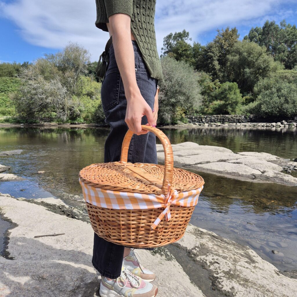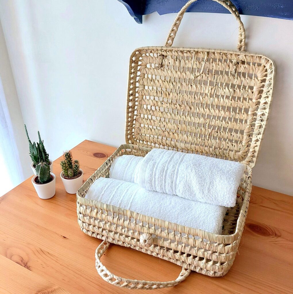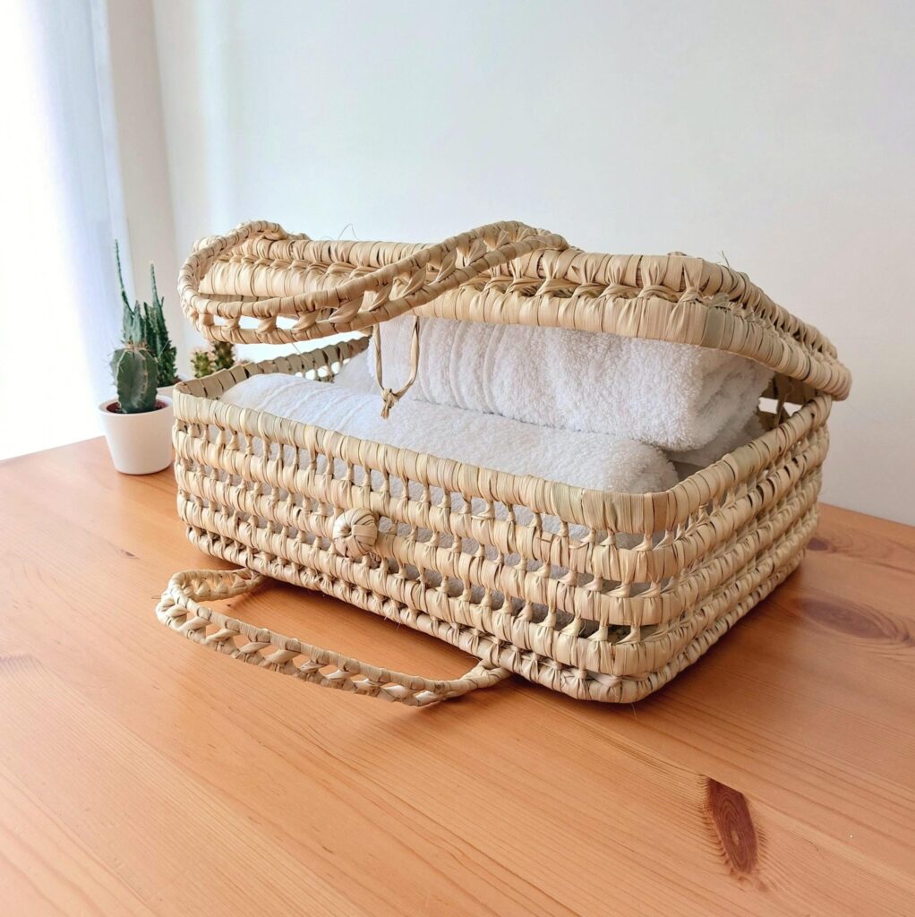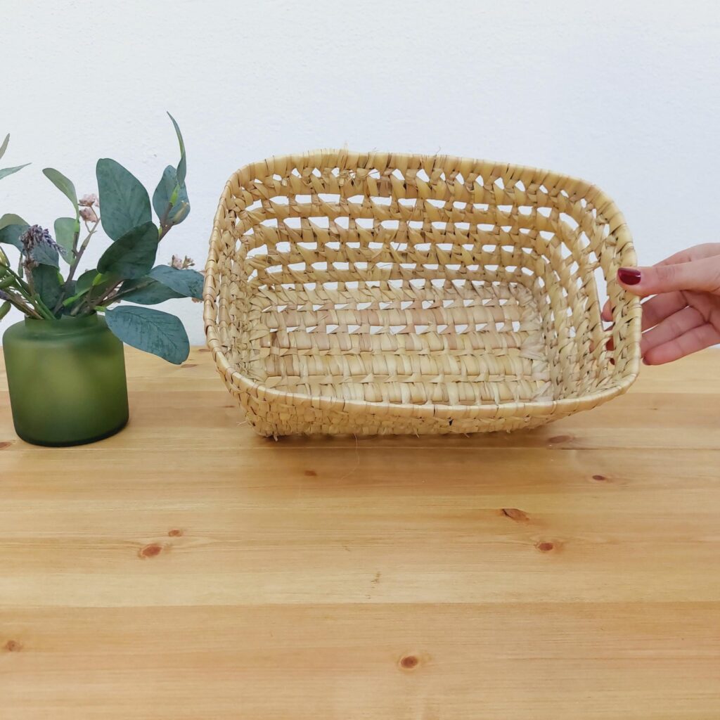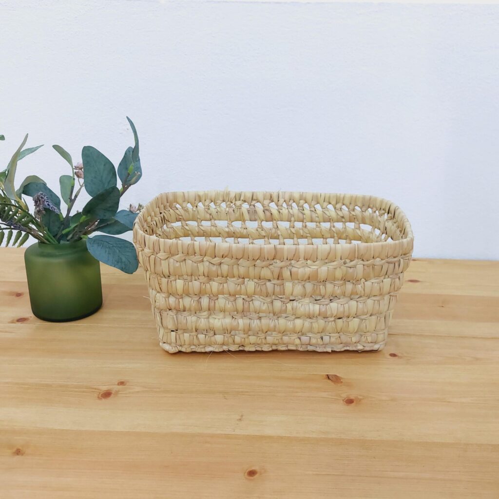Cesto de arrumação decorativo feito de palma, uma planta natural, feito à mão. Sustentável e vegan.