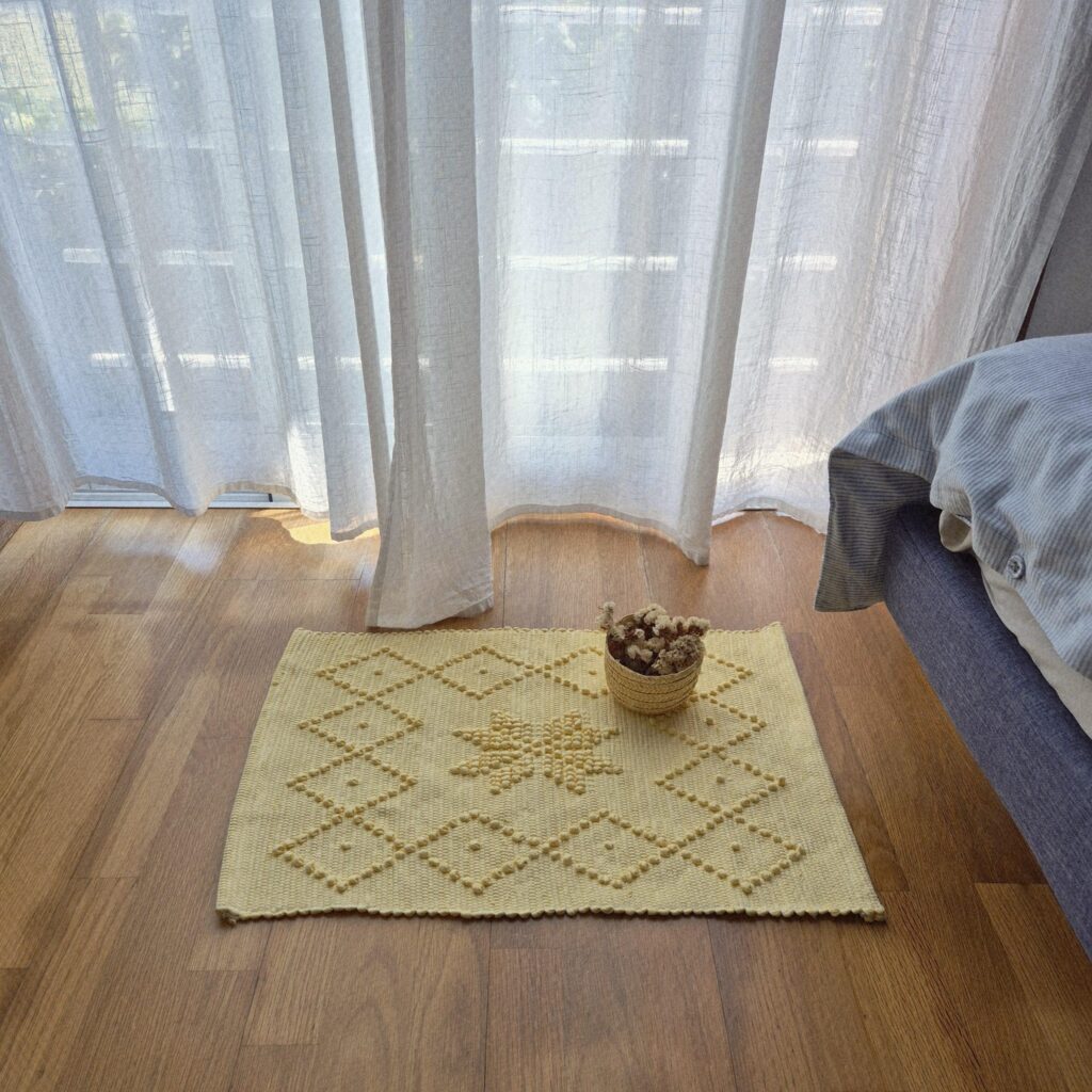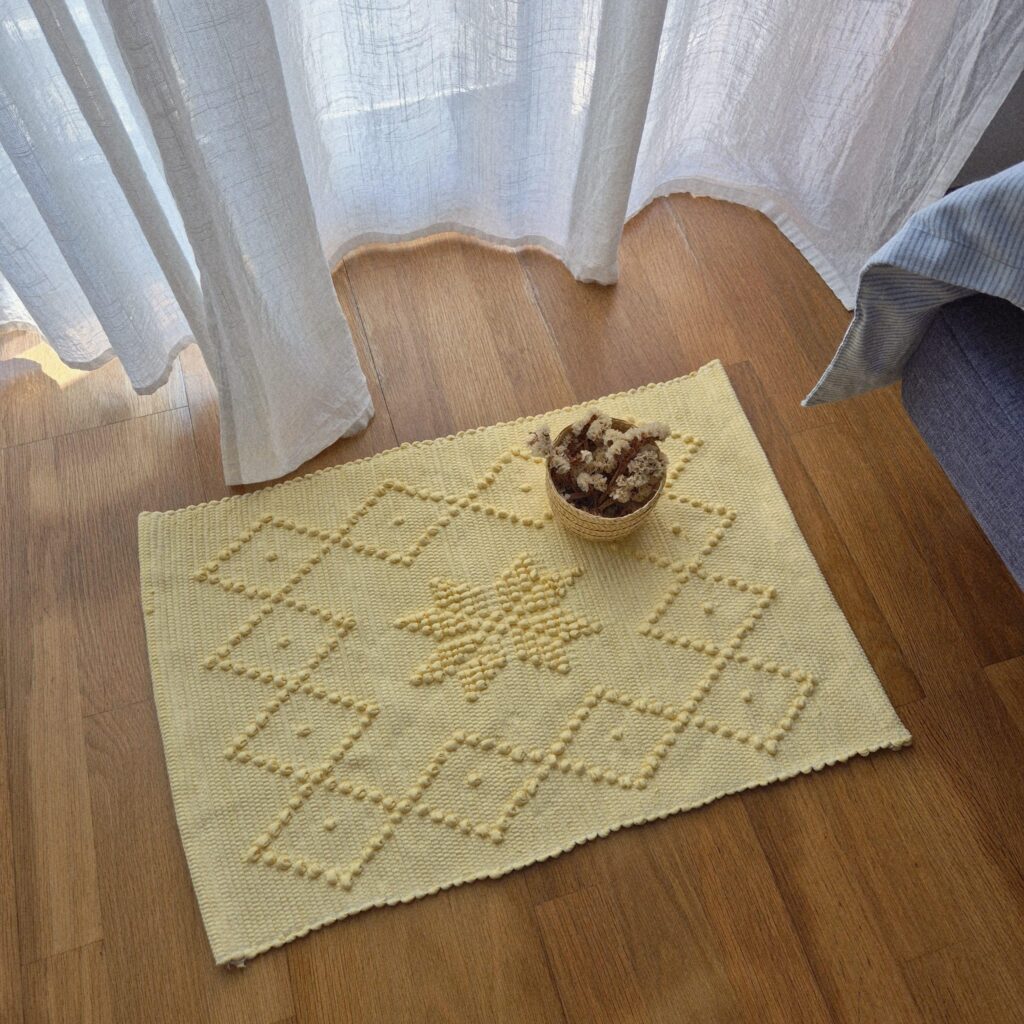 Uma vez que este tapete é fabricado com produtos reciclados das indústrias têxteis, pode haver ligeiras variações de cor.